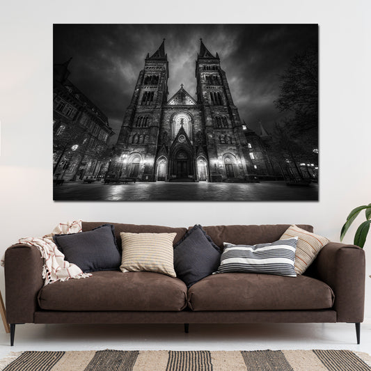Kirche Wiesbaden Doppeltürme Nachtaufnahme schwarz weiß Wandbild