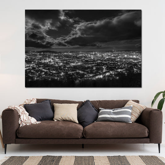 Wiesbaden Skyline schwarz weiß bei Nacht Stadtlichter Wandbild