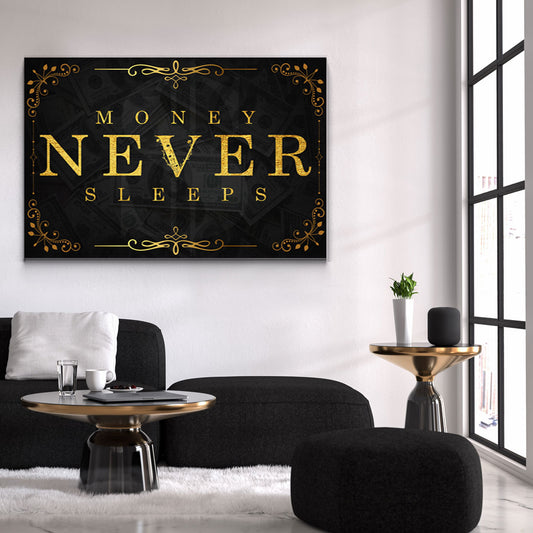Money Never Sleeps Geld & Erfolg Motivation Wandbild Kunstwerk