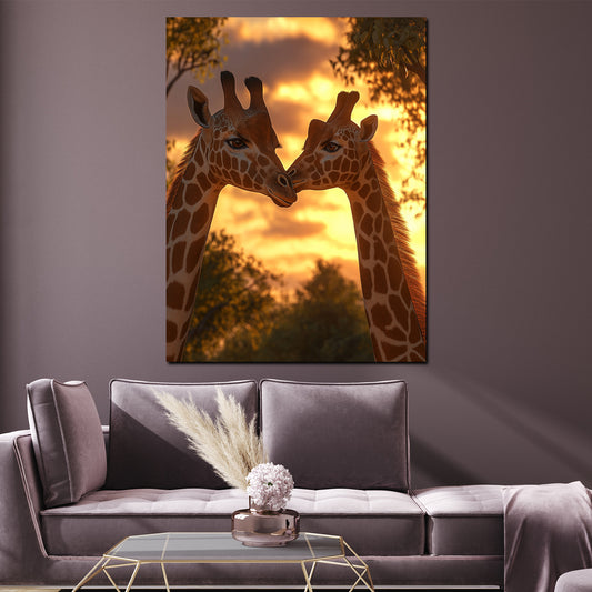 Romantisches Giraffenpaar Afrika Landschaft Wandbild