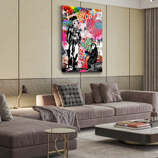 Charlie und Affe im bunten Graffiti Style Wandbild Kunstwerk