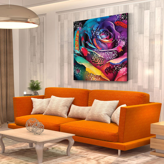 Street Art Graffiti Rose in farbenfrohem Wandbild Kunstwerk