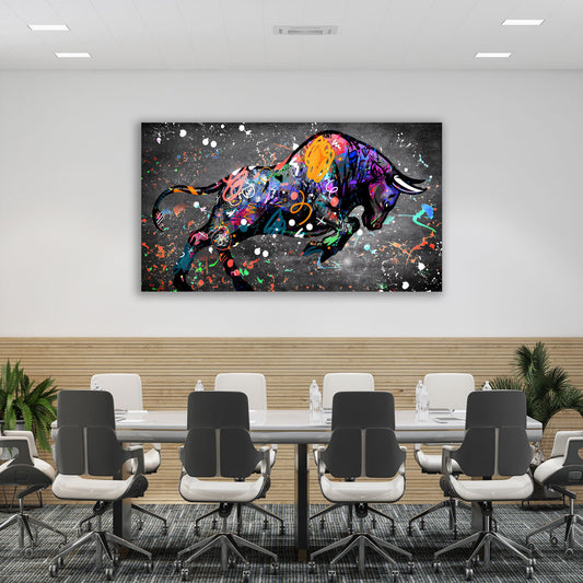 Street Art Kuh mit Zeitung und bunten Graffiti Akzenten Wandbild Kunstwerk