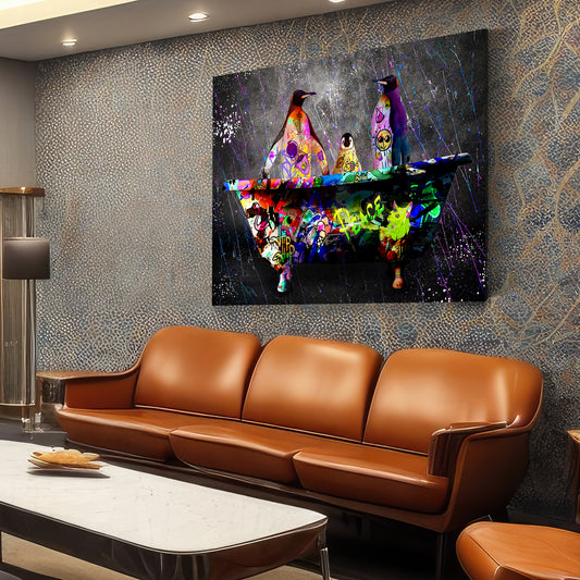 Pinguin in Badewanne Graffiti Pop Art Style Wandbild Kunstwerk