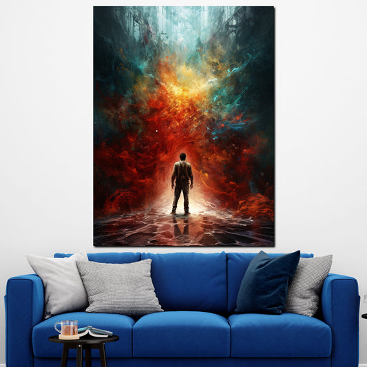 Modern Mann vor abstrakte Muster Wandbild Kunstwerk