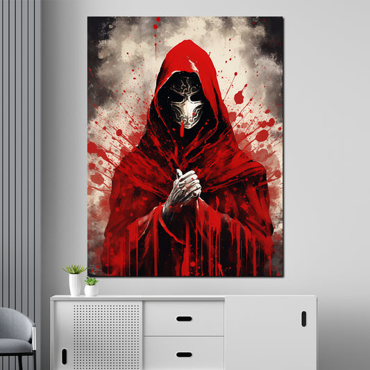 Gestalt mit Maske und rotem Umhang Wandbild Kunstwerk