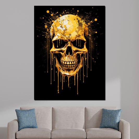Abstrakt goldener Totenkopf Dark Style Wandbild Kunstwerk