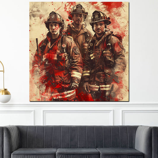 Abstrakt Feuerwehrmänner im Einsatz Wandbild Kunstwerk