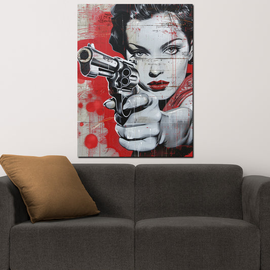 Frau Beautiful Girl Gun Red Style Wandbild Kunstwerk