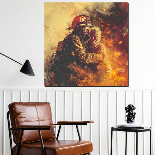 Abstrakt Beautiful Job Feuerwehrmann rettet ältere Dame Wandbild Kunstwerk