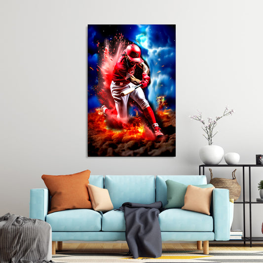 Baseball mit intensiven Farben und Bewegung Wandbild Kunstwerk