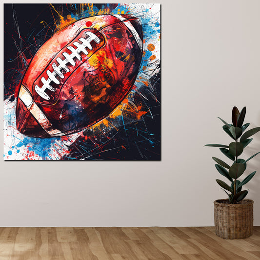Rugby Ball abstrakt farbenreiche Football Explosion Wandbild Kunstwerk
