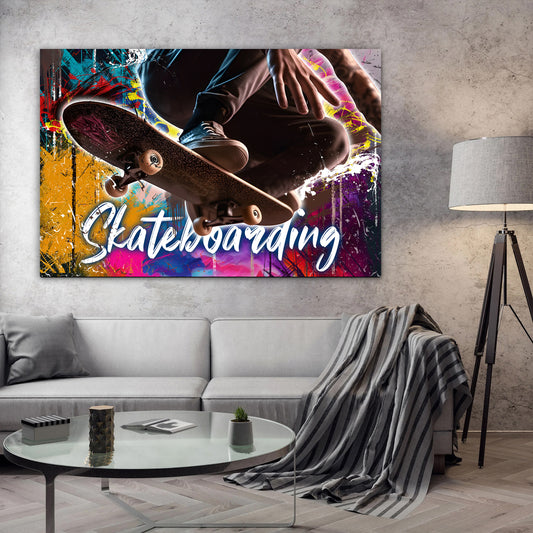 Skateboarding mit farbenfrohem Graffiti Style Wandbild Kunstwerk