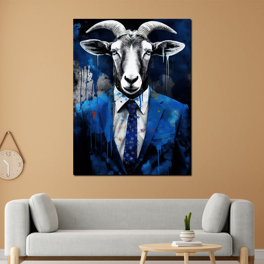 Ziegenbock im Anzug Dark Style Wandbild Kunstwerk