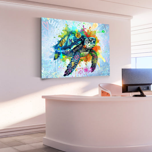 Pop Art Bunte Schildkröte Graffiti Wandbild Kunstwerk