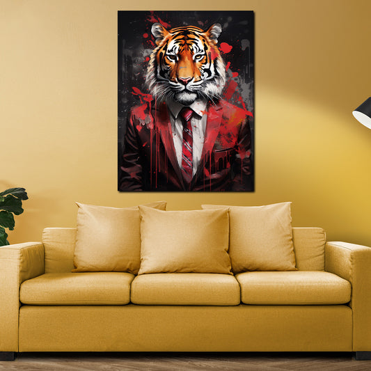 Abstrakt Tiger mit Anzug Wandbild Kunstwerk