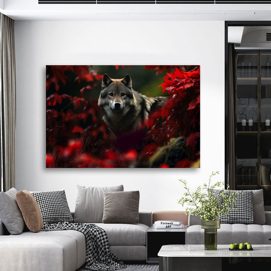 Abstrakt wilder Wolf in rot und schwarz Wandbild Kunstwerk