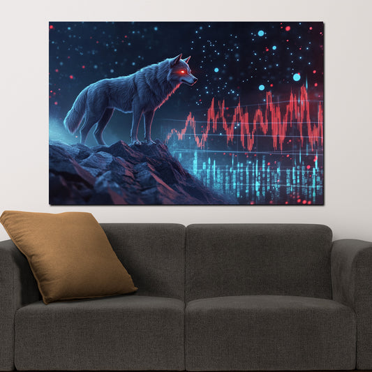 Wolf mit Aktienchart Börse futuristisch Wandbild Kunstwerk