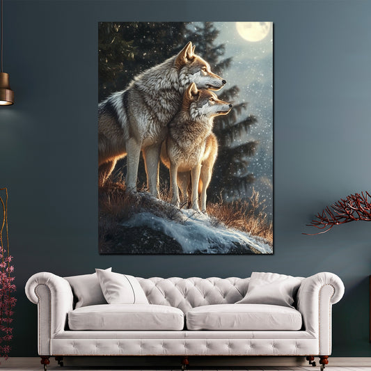 Zwei Wölfe im Schnee Waldromantik Wandbild