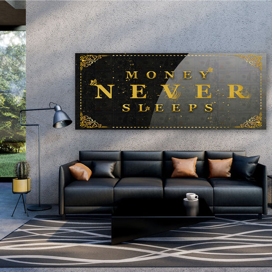 Money Never Sleeps Geld & Erfolg Motivation Wandbild Kunstwerk