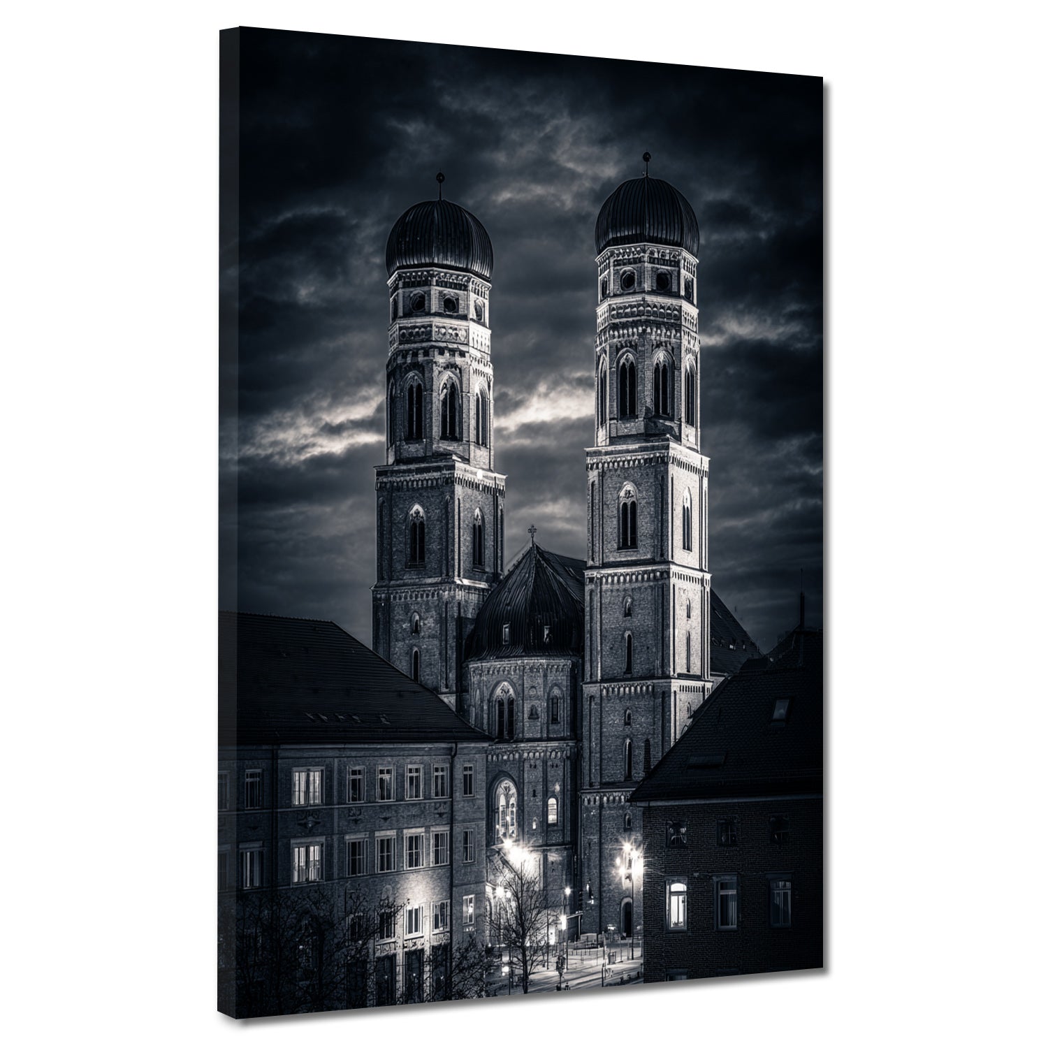 Altstadt Panorama Kirche München schwarz weiß Wandbild