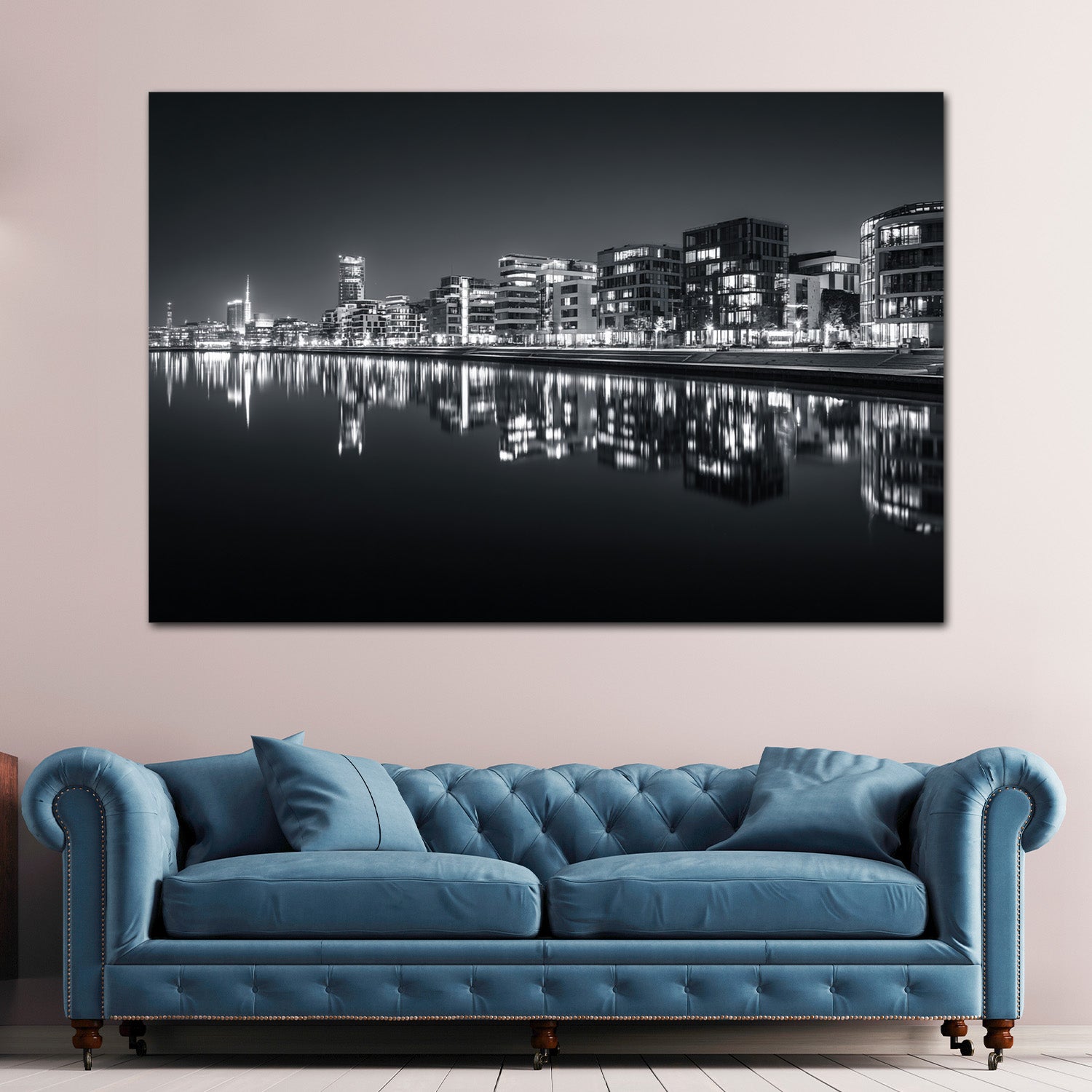 Architektur Bremen Wasserspiegelung schwarz weiß Wandbild