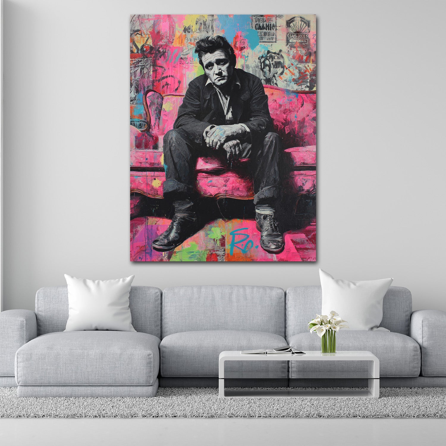 Musiklegende Johnny Cash Retro Pop Art Wandbild