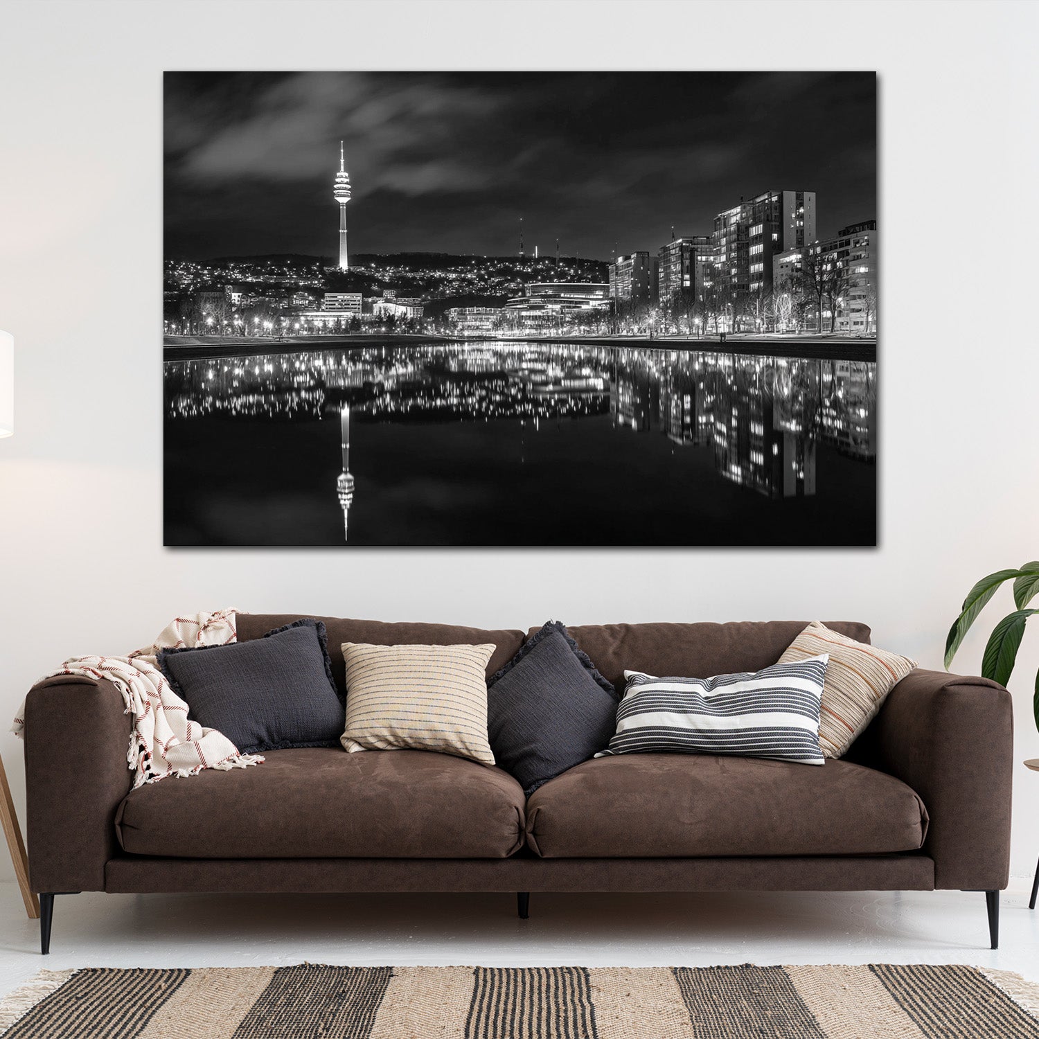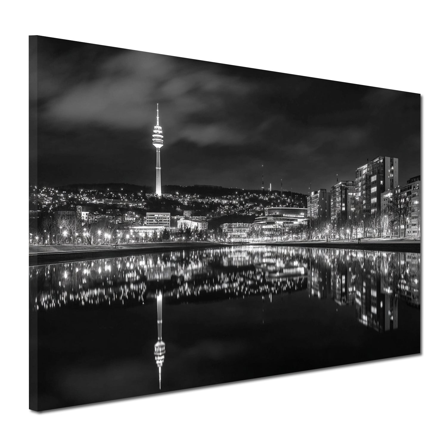 Stadtansicht Fernsehturm Stuttgart Lichterspiel schwarz weiß Wandbild