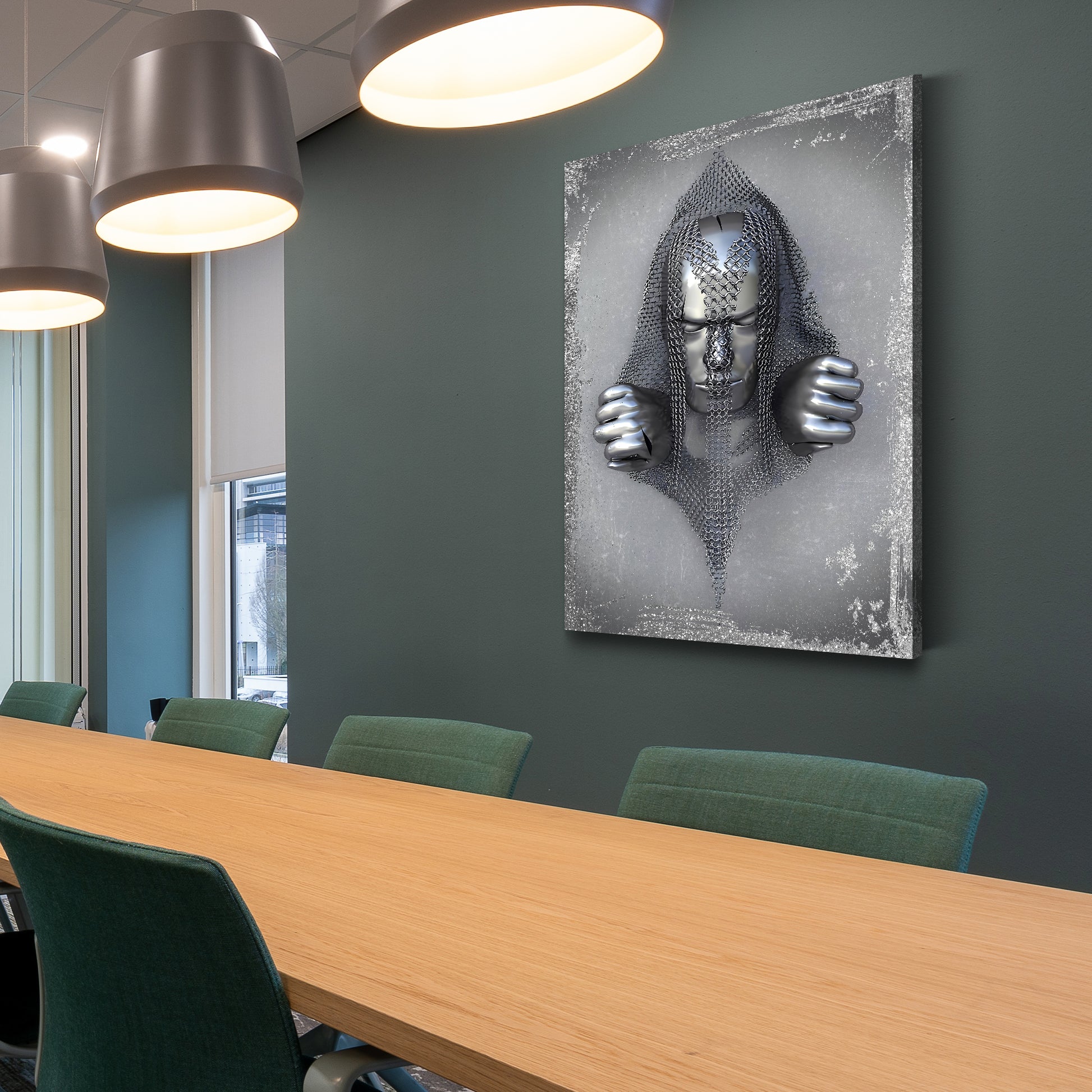 Abstrakt Metallfigur Chains Metallic Wandkunst Körper Silver Style Wandbild Kunstwerk