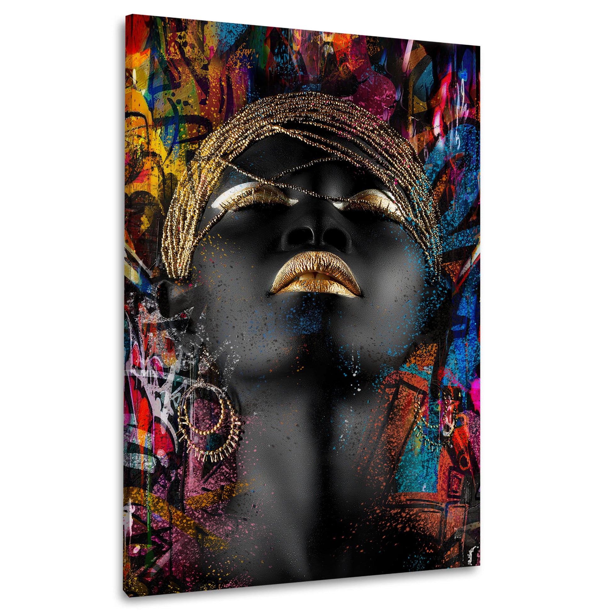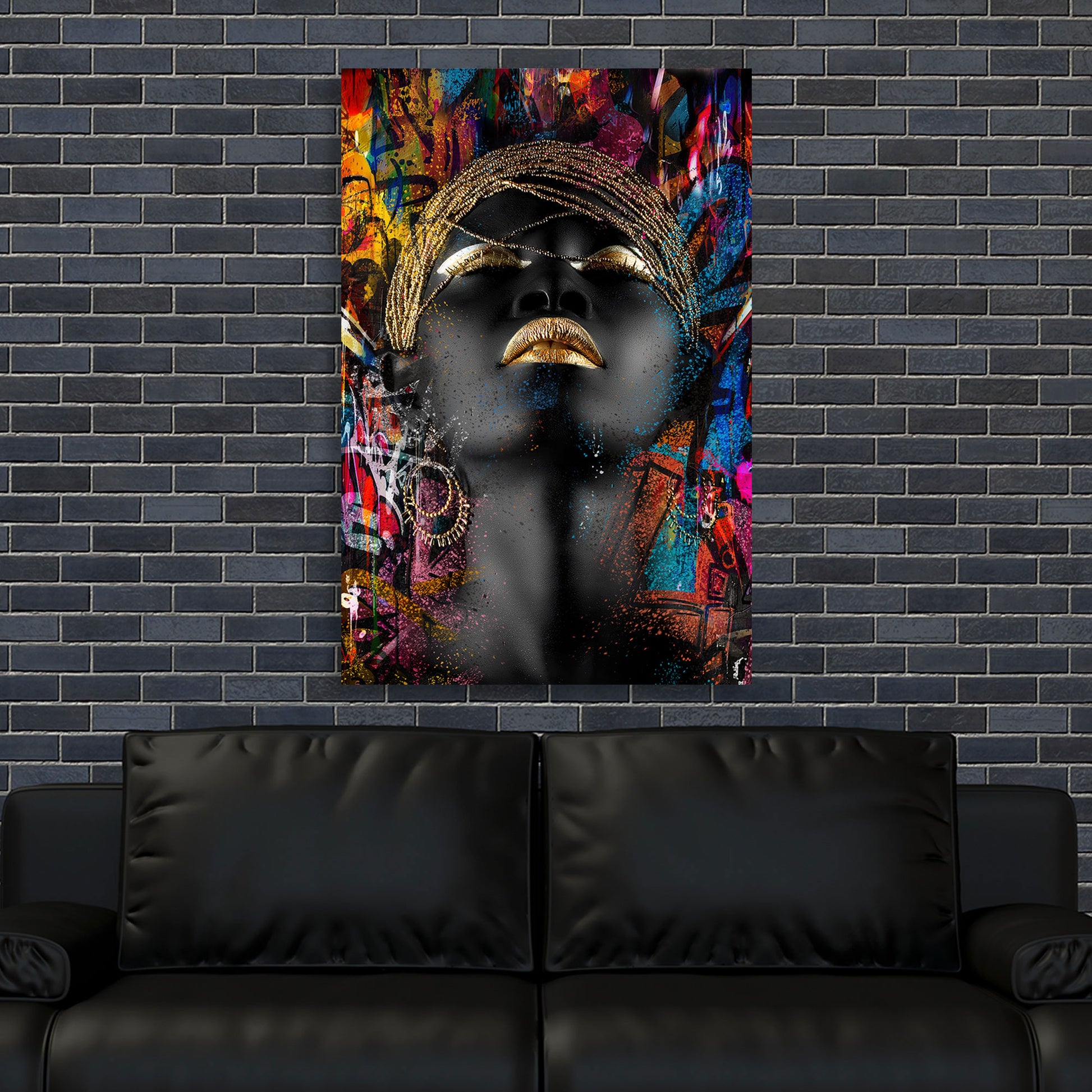 Street Art afrikanische Frau Graffiti Stil Wandbild Kunstwerk