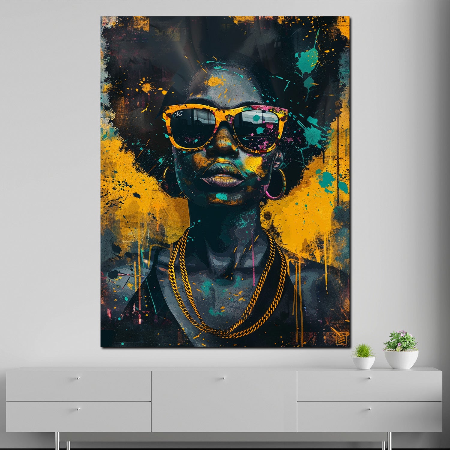 Afrikanische Frau mit Goldketten und bunten Akzenten Wandbild Kunstwerk