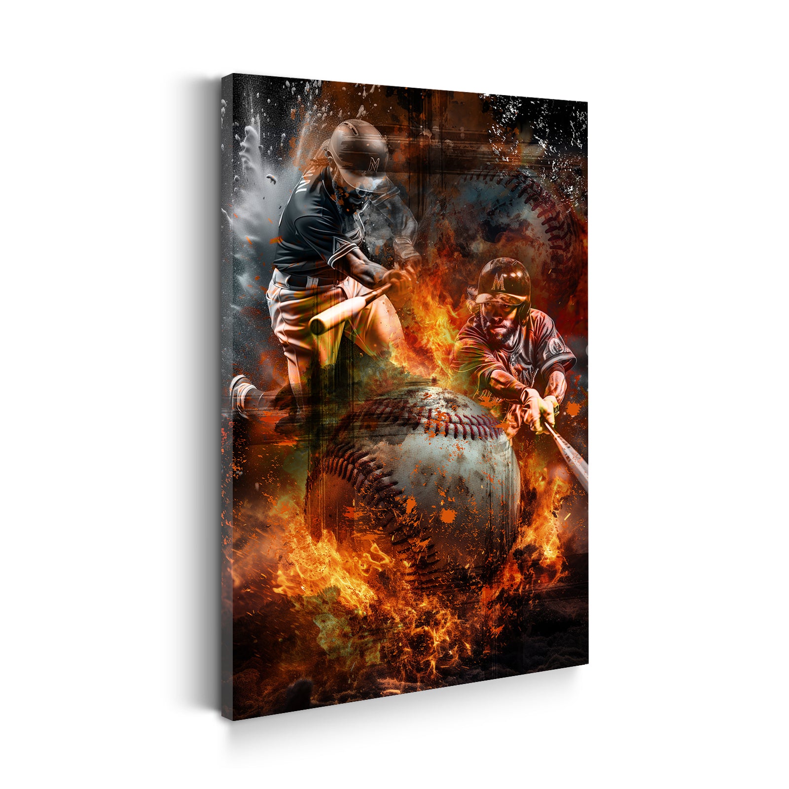 Baseball Action und Flammen Wandbild Kunstwerk