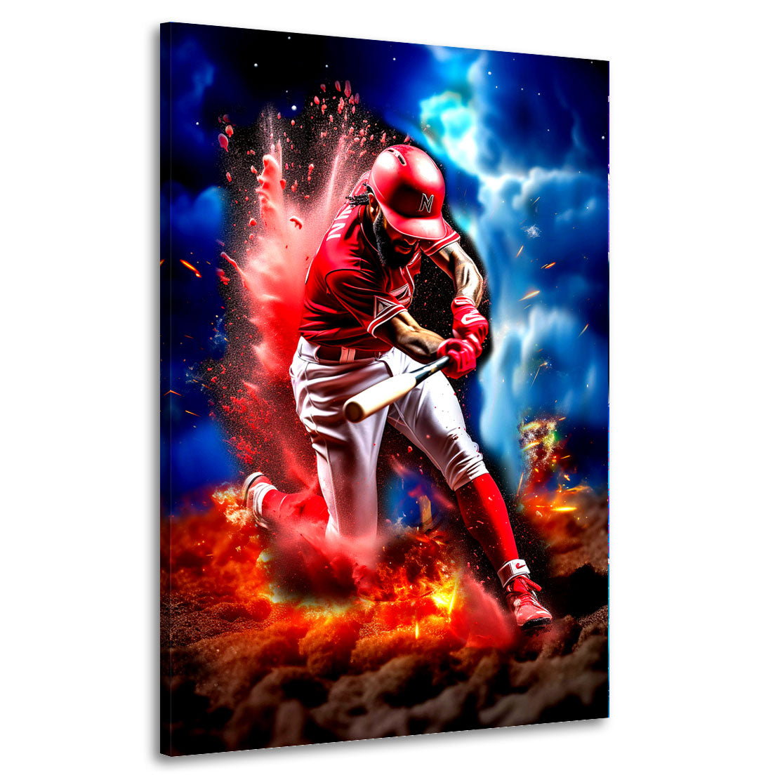 Baseball mit intensiven Farben und Bewegung Wandbild Kunstwerk