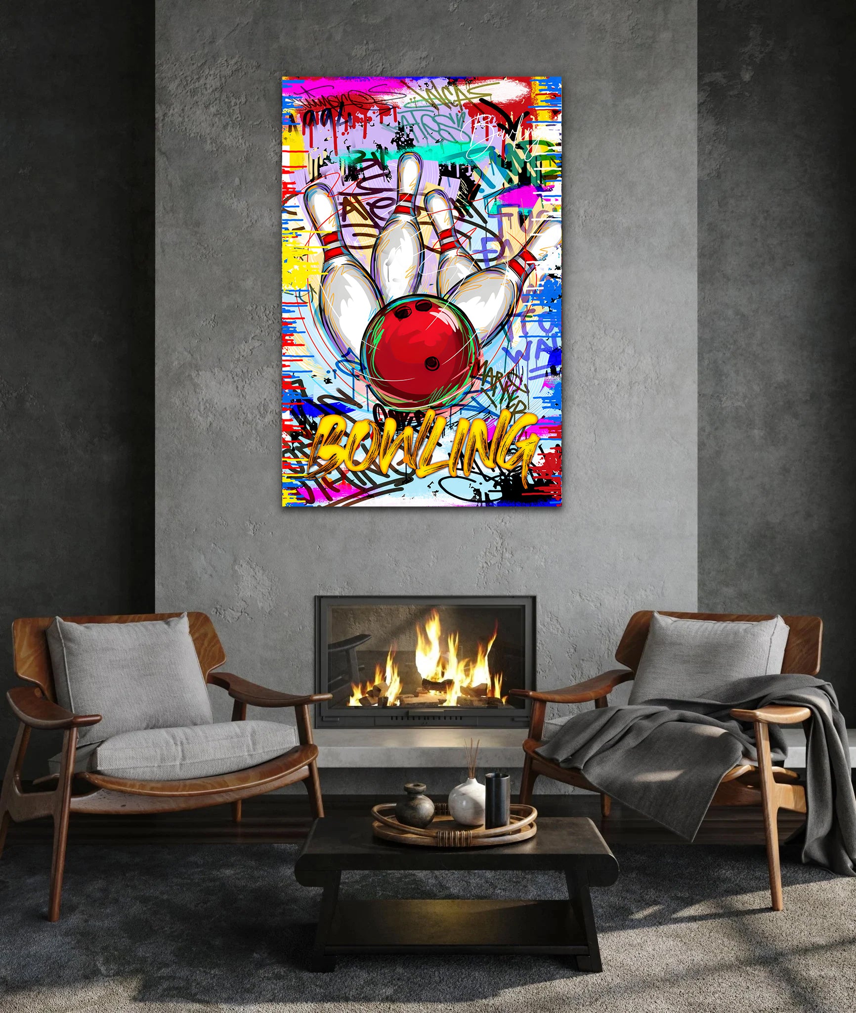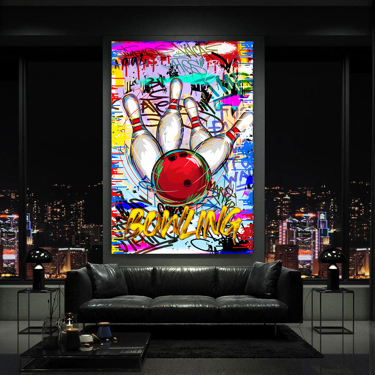Bowlingpins und Ball Graffiti Edition Wandbild Kunstwerk
