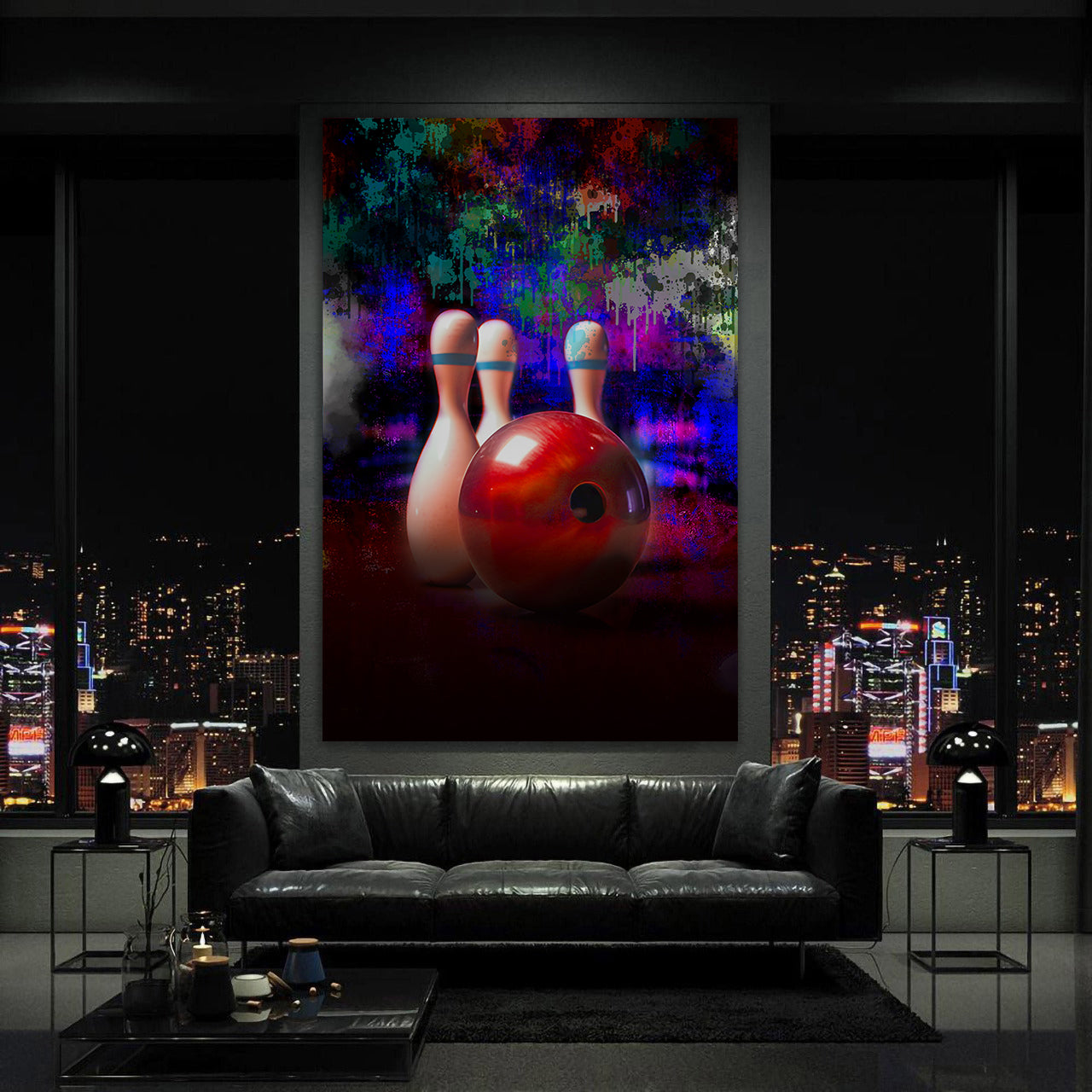 Street Art Bowlingpins und Kugel Wandbild Kunstwerk