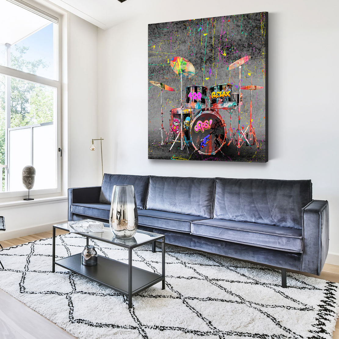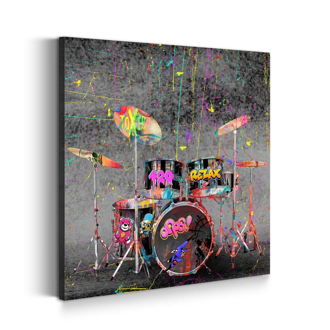 Street Art Buntes Schlagzeug Wandbild Kunstwerk
