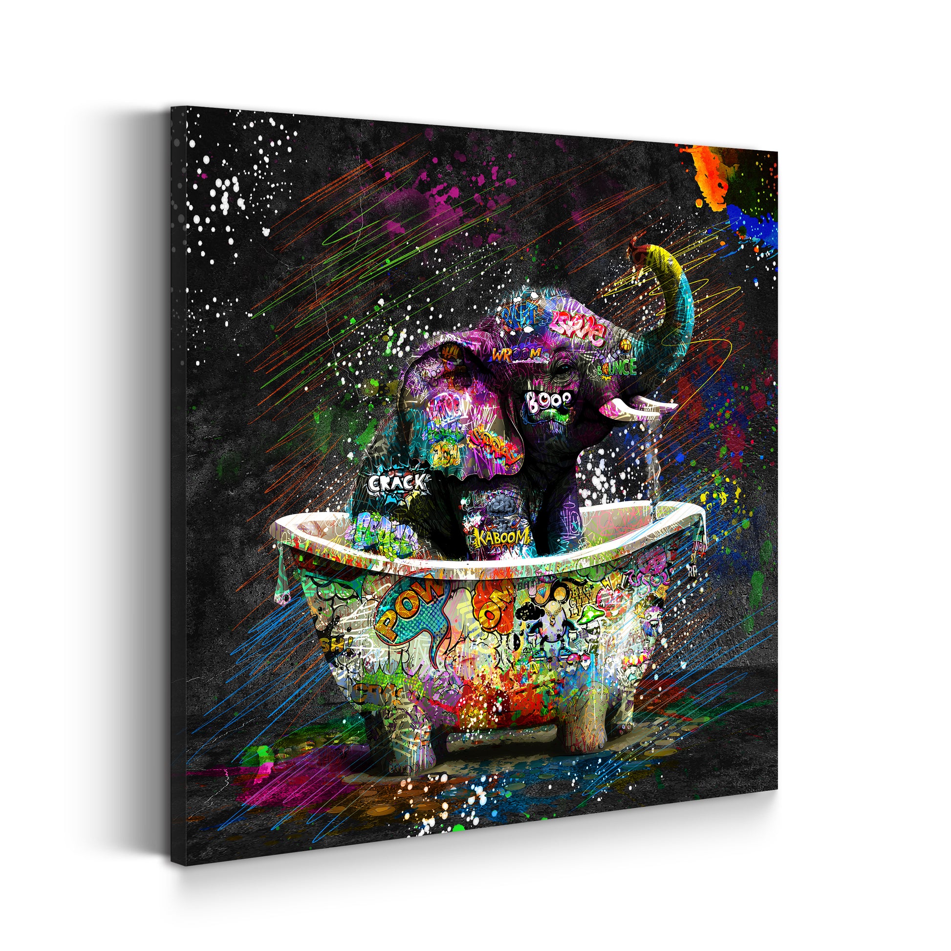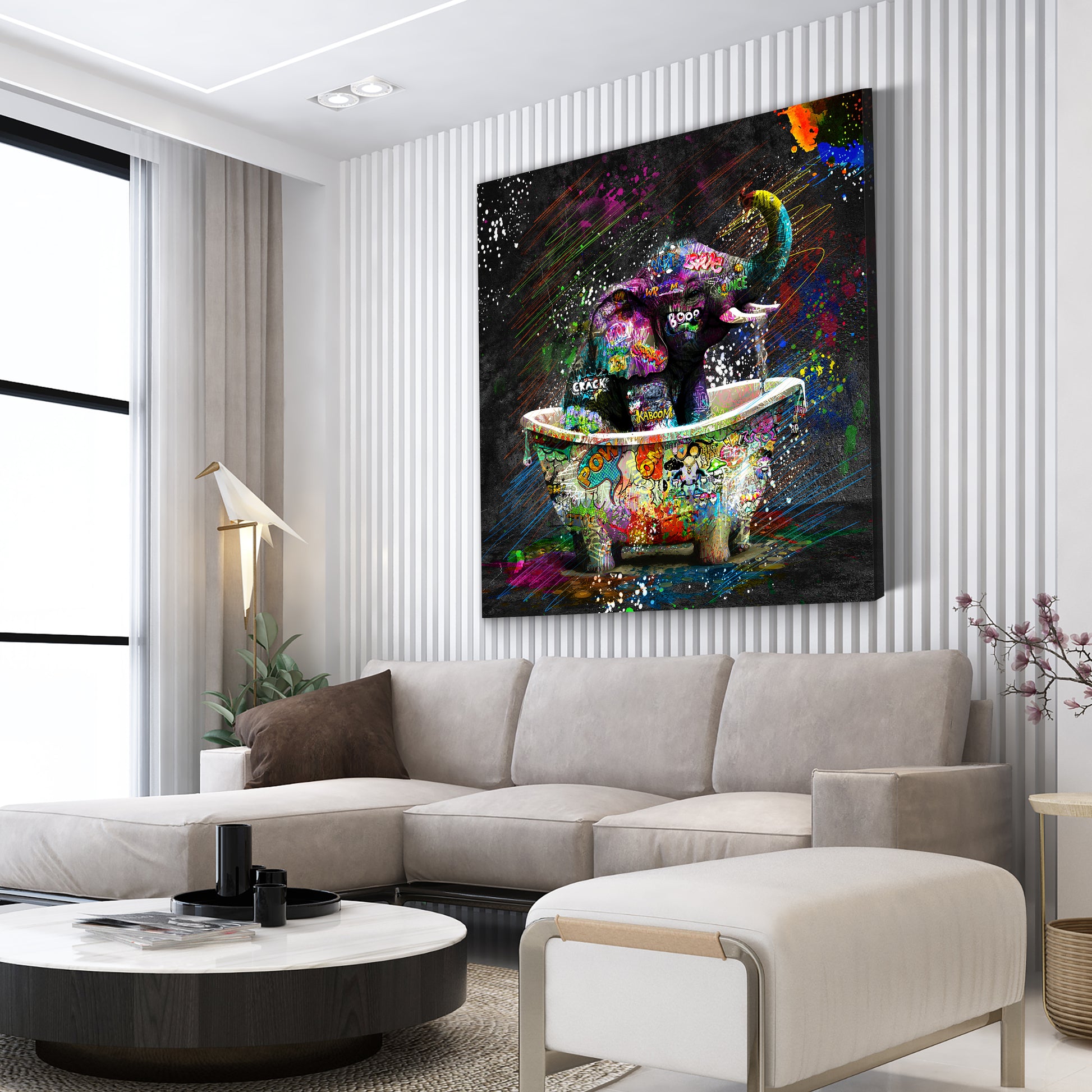Elefant in Badewanne Street Art Style Wandbild Kunstwerk
