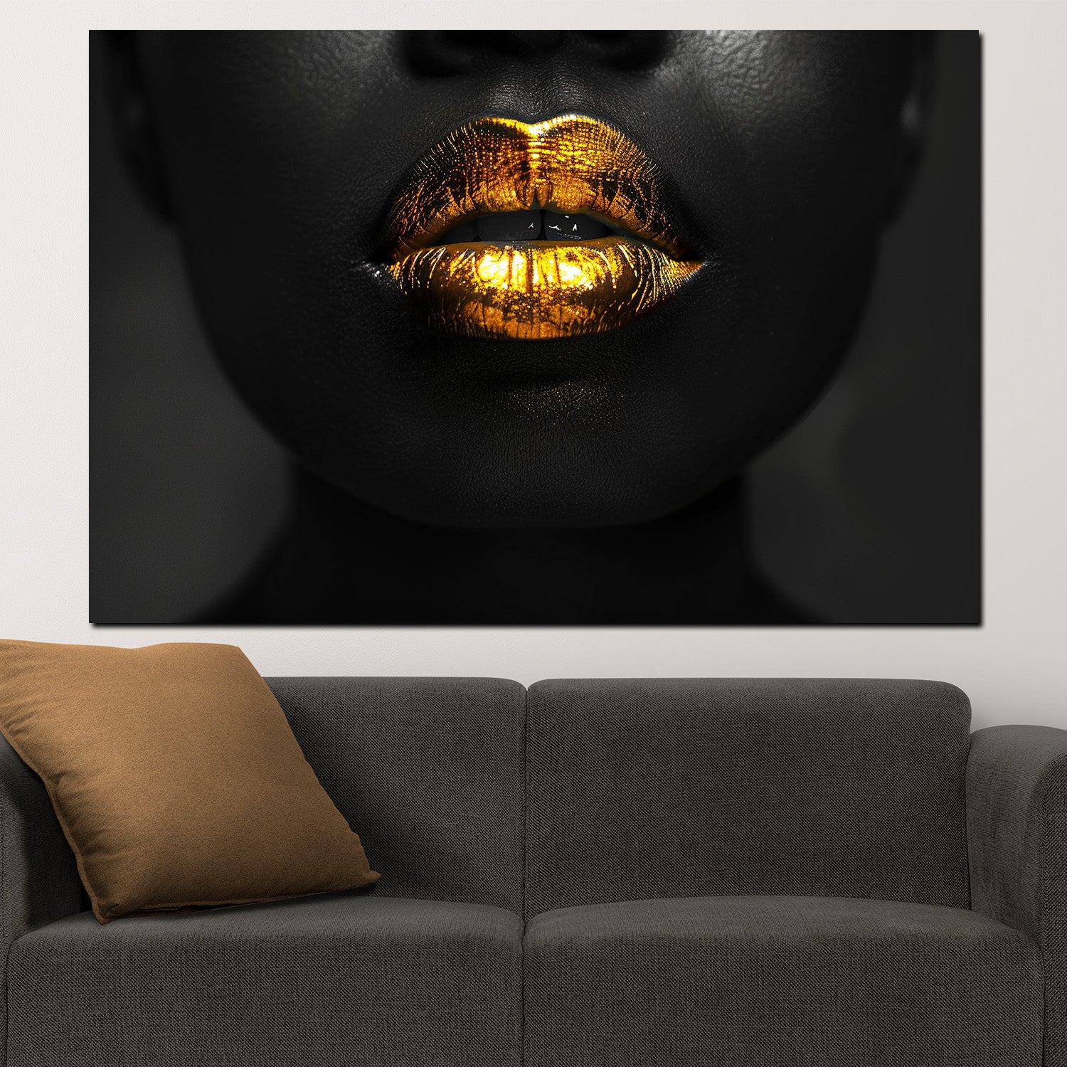 Glänzende goldene Lippen sinnlich Wandbild Kunstwerk