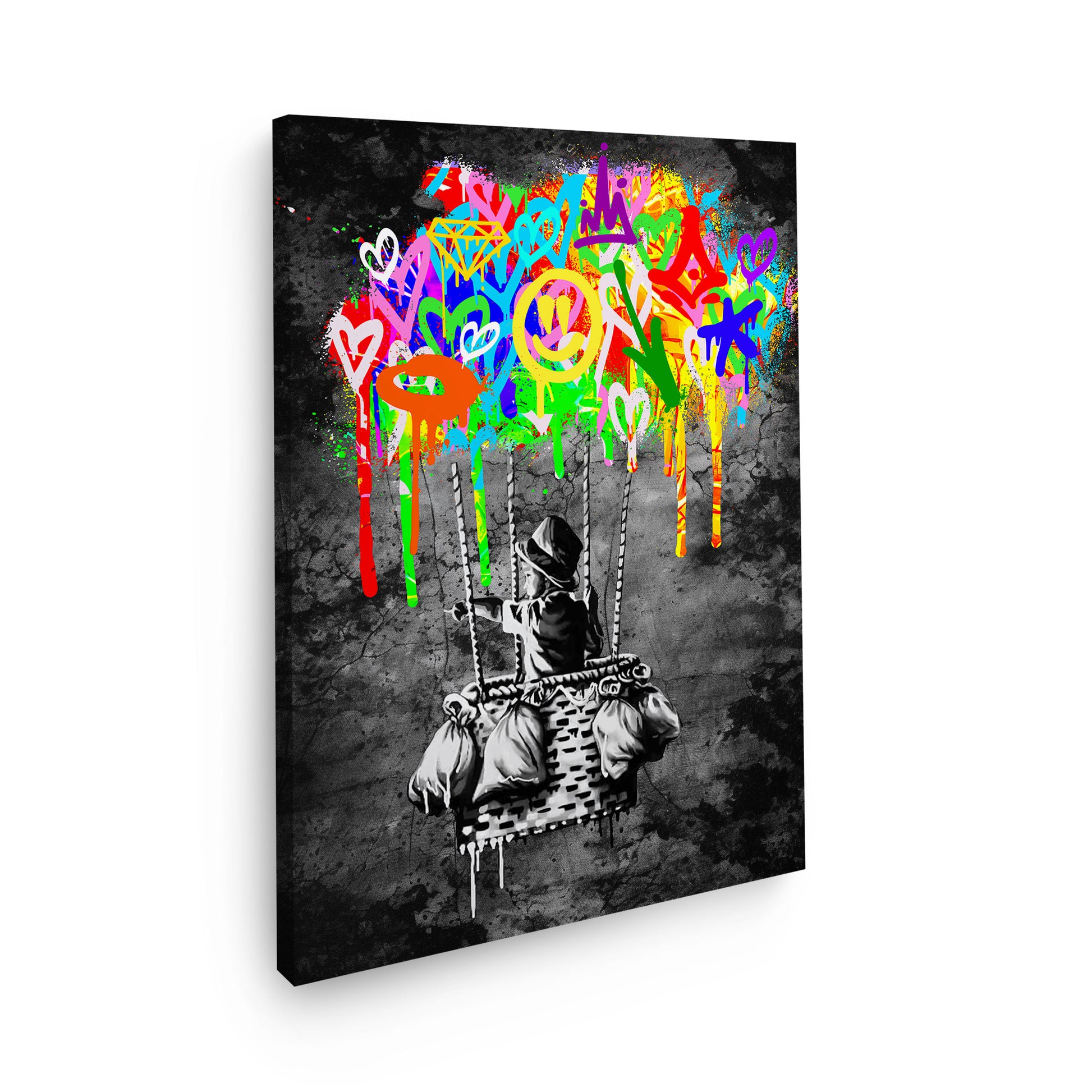 Junge im Street Art Heißluftballon Wandbild Kunstwerk