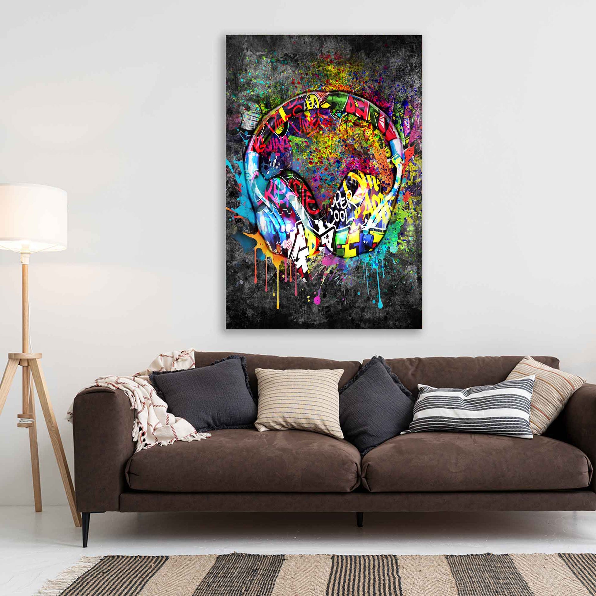 Kopfhörer Graffiti Street Art Style Wandbild Kunstwerk