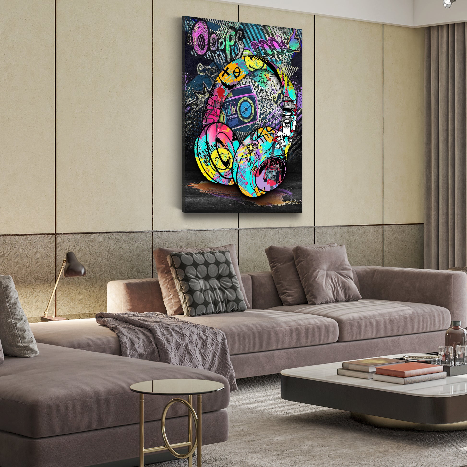 Kopfhörer Graffiti Style Wandbild Kunstwerk