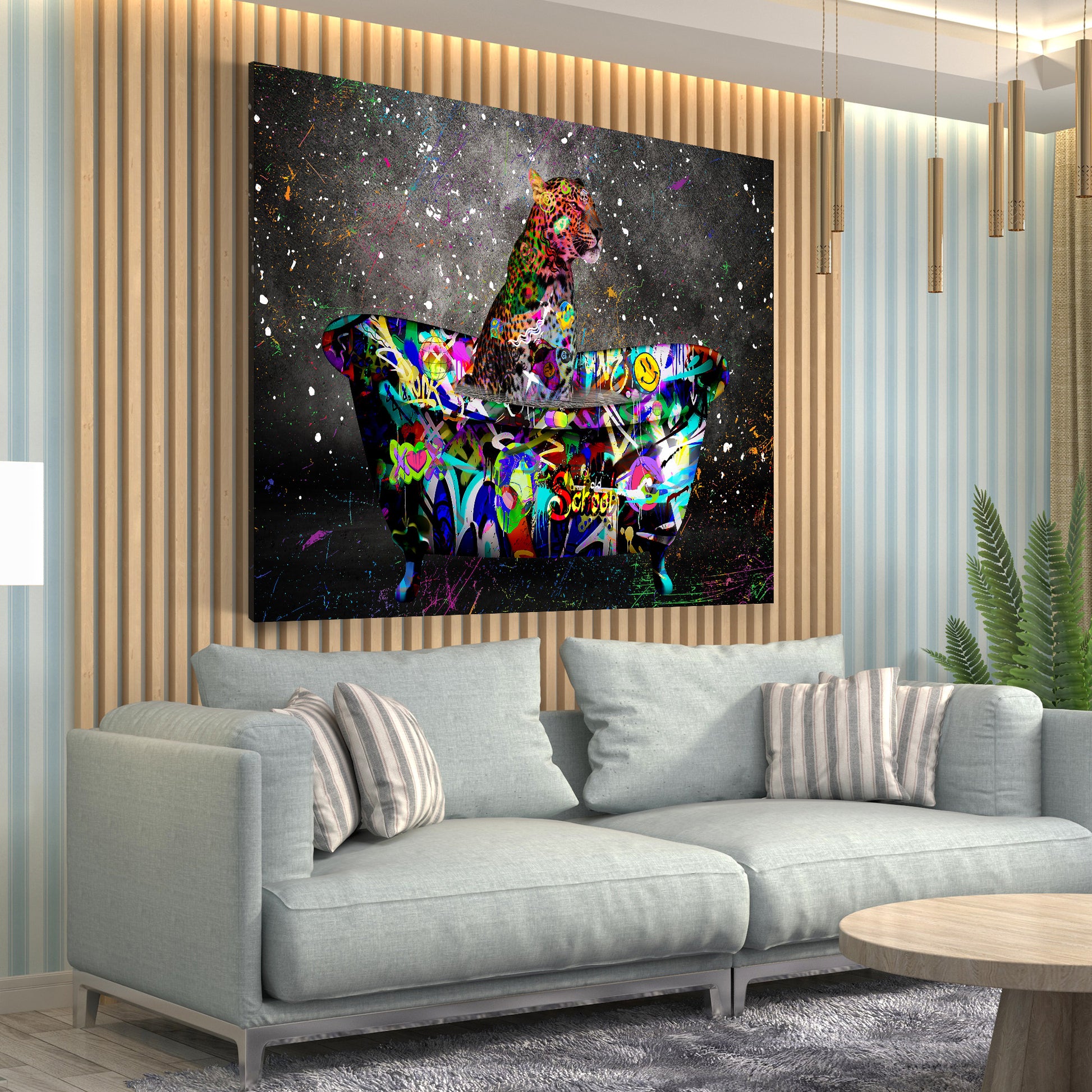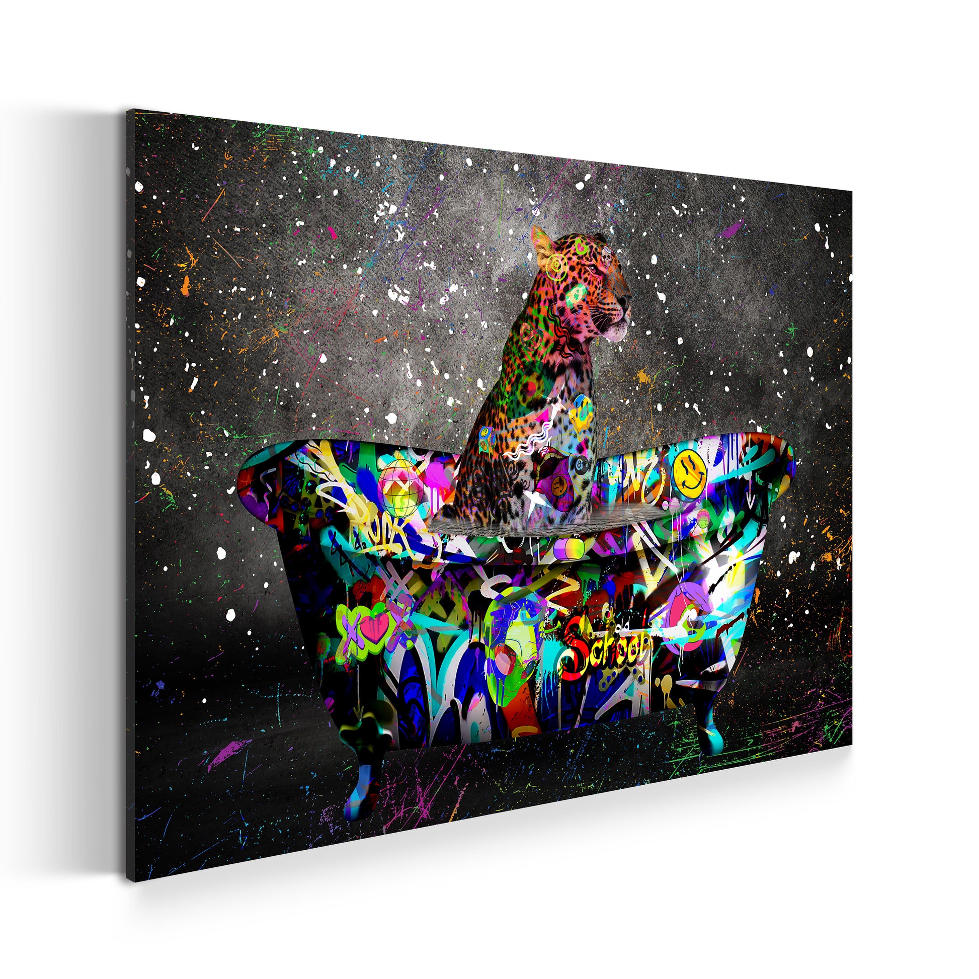 Leopard in Badewanne Graffiti Pop Art Style Wandbild Kunstwerk