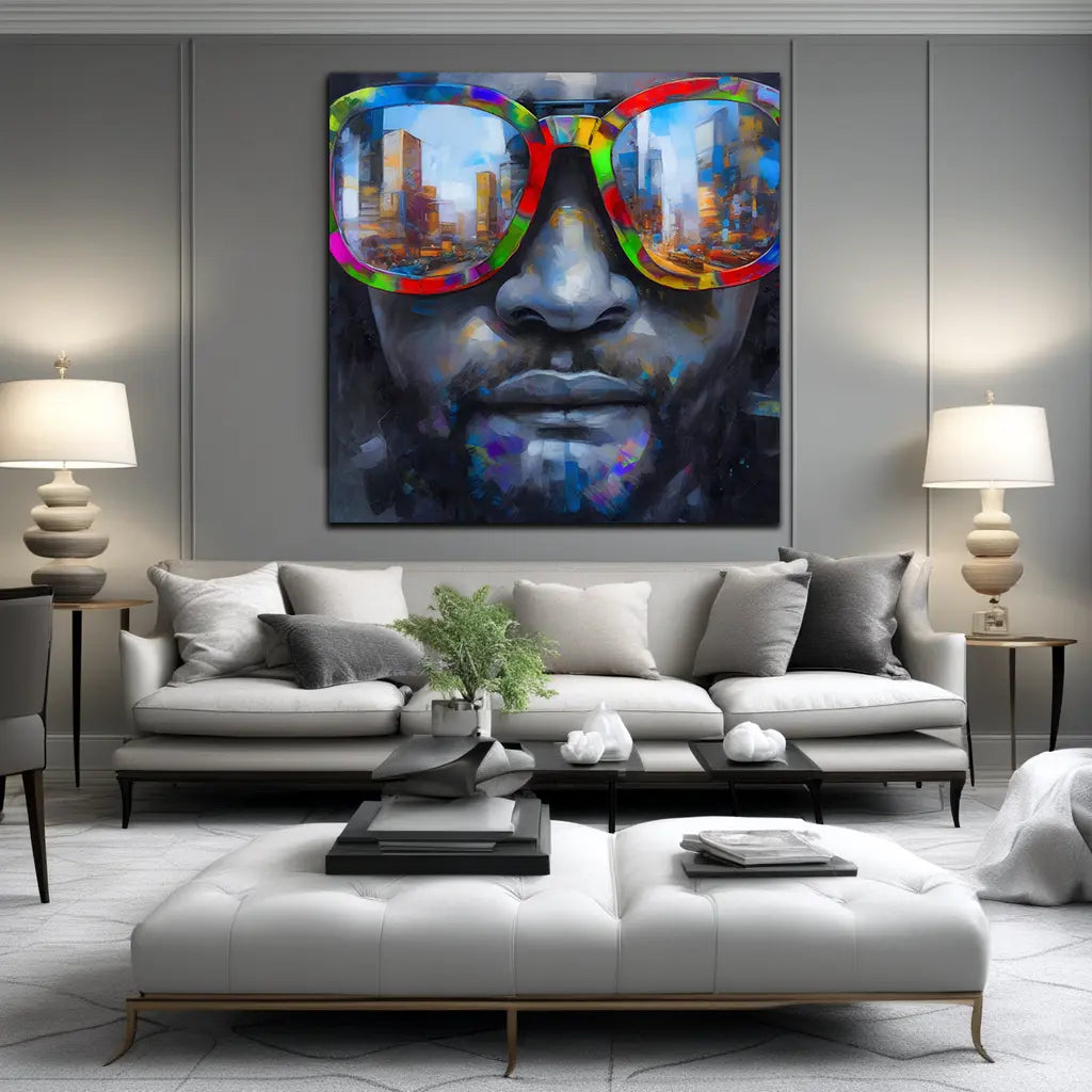 Mann mit Sonnenbrille Gesicht Pop Art Wandbild Kunstwerk