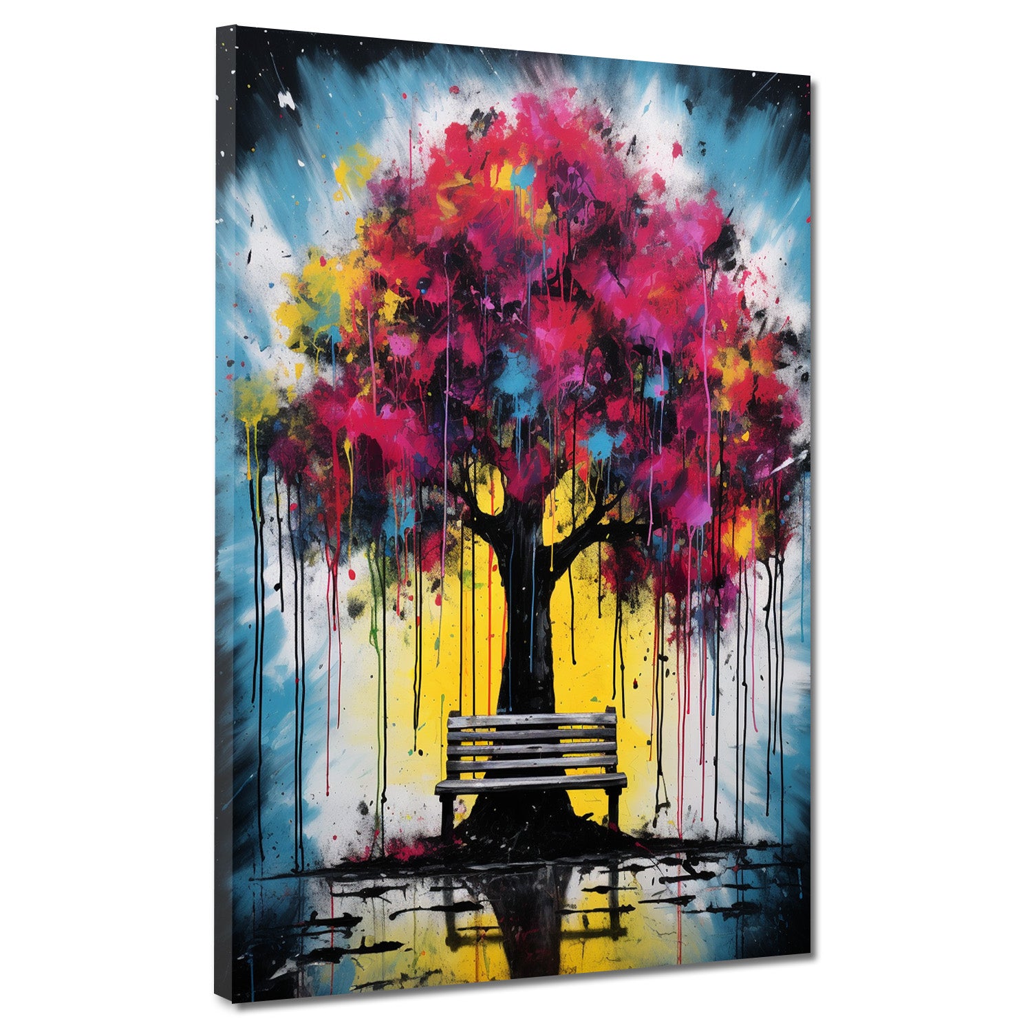 Pop Art Baum mit Pinken Blättern Wandbild Kunstwerk