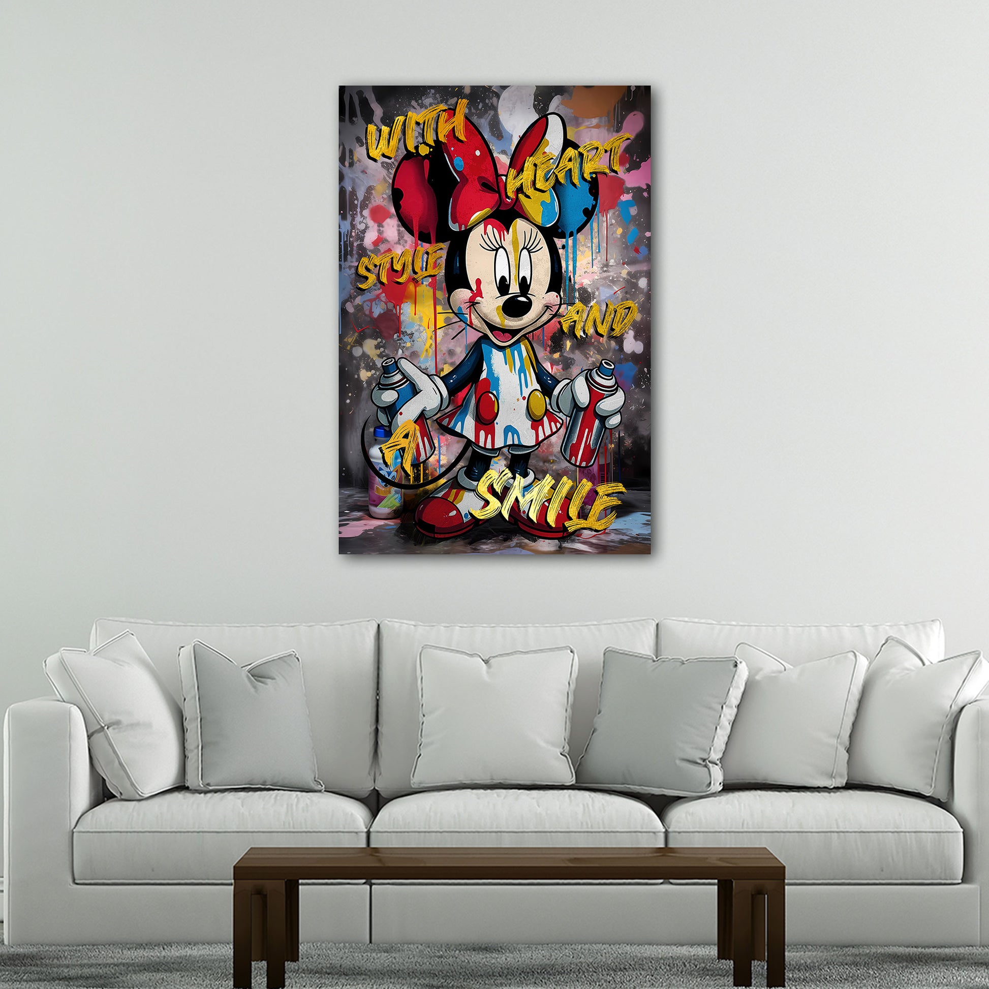 Pop Art Minnie Style mit Spraydosen und lebhaften Details Wandbild Kunstwerk