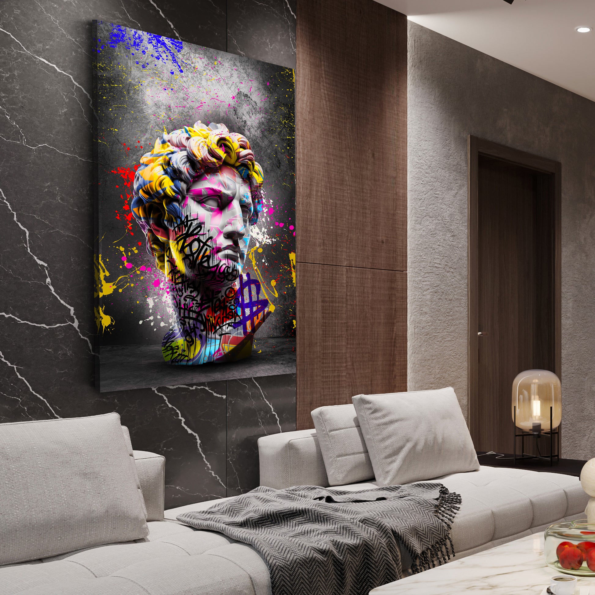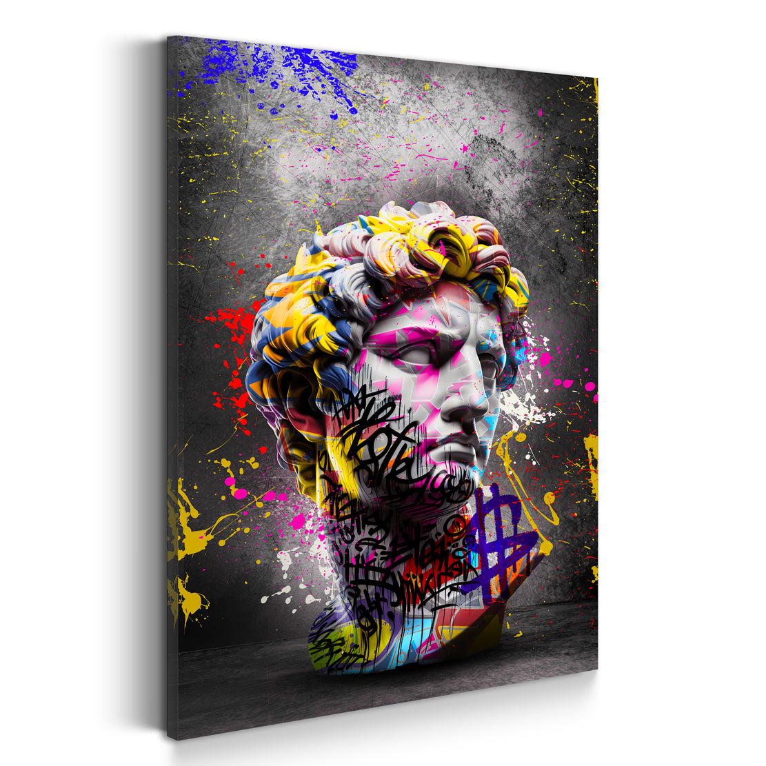 Pop Art Skulptur David mit Street Art Elementen Wandbild Kunstwerk