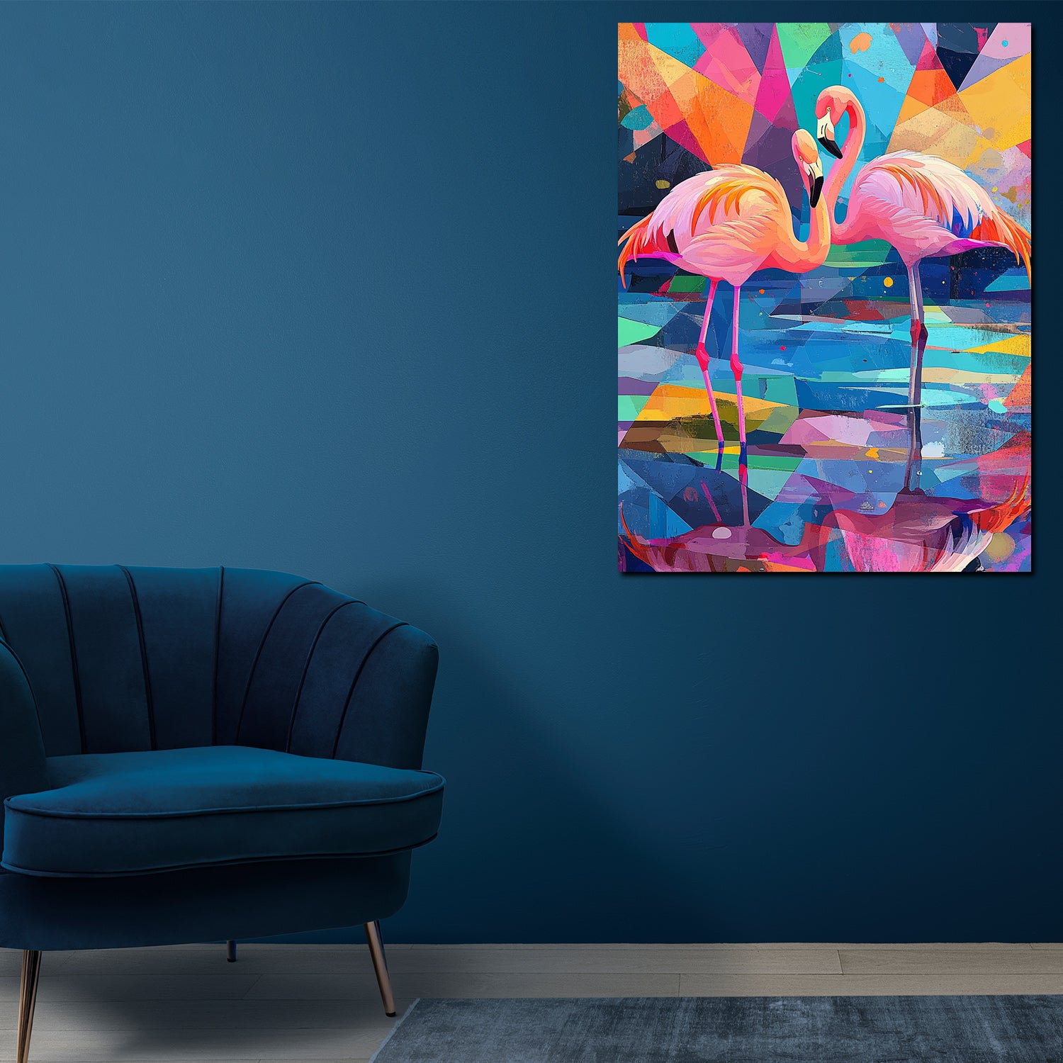 Pop Art zwei Flamingos lebendig und farbenprächtig Wandbild Kunstwerk