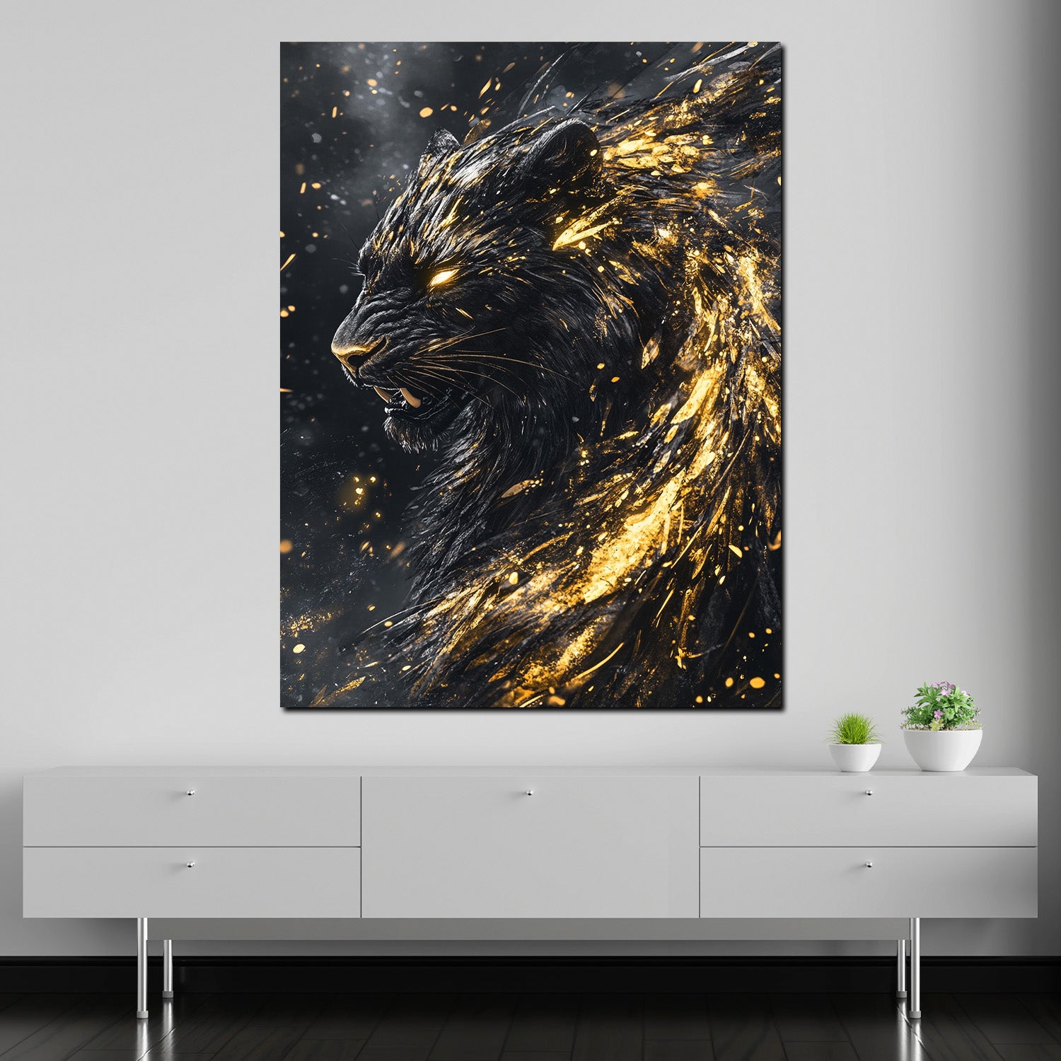 Schwarzer Panther mit Gold Effekten Wandbild Kunstwerk
