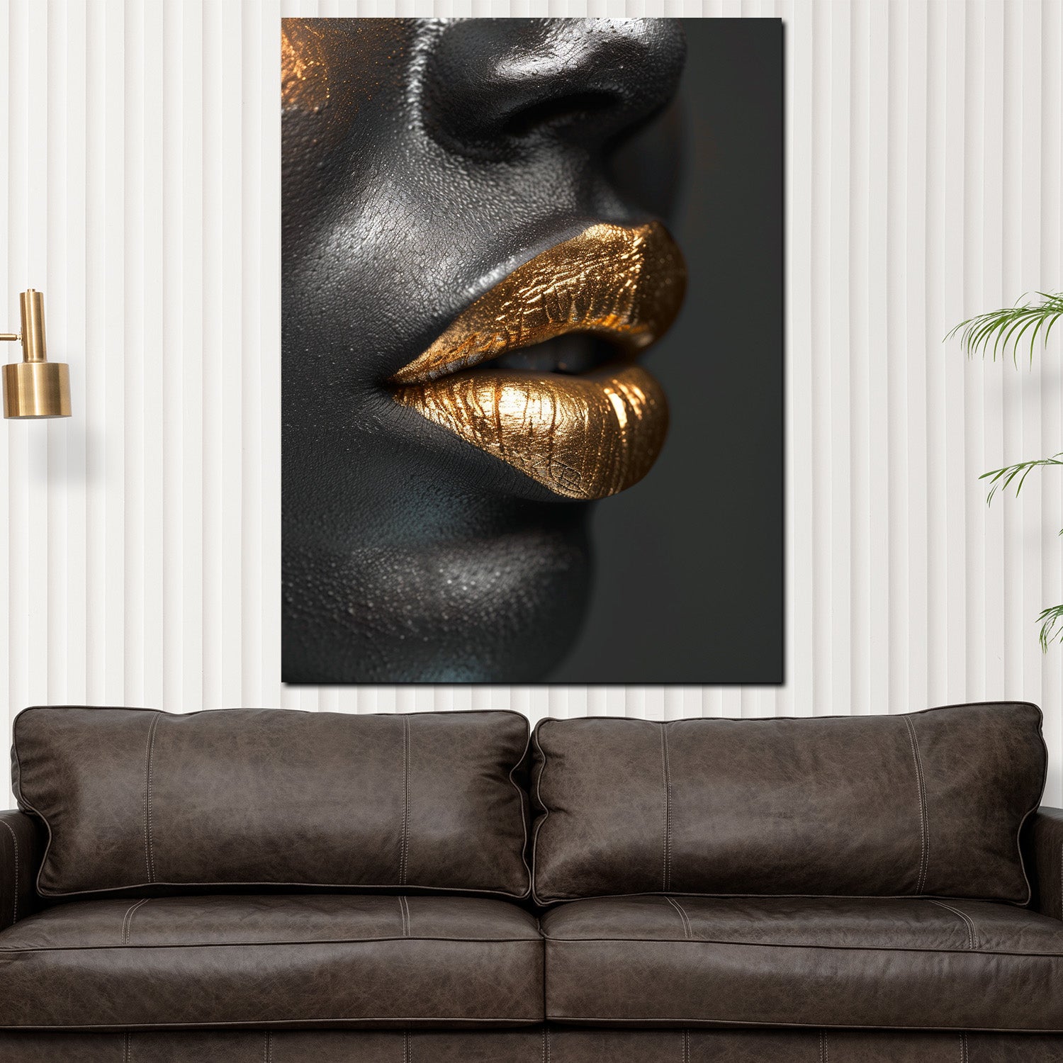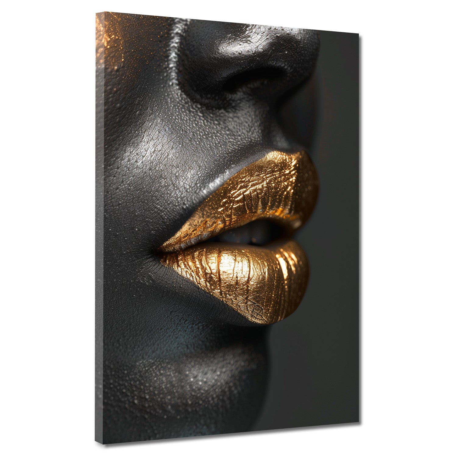 Sinnliche Lippen in Gold Wandbild Kunstwerk