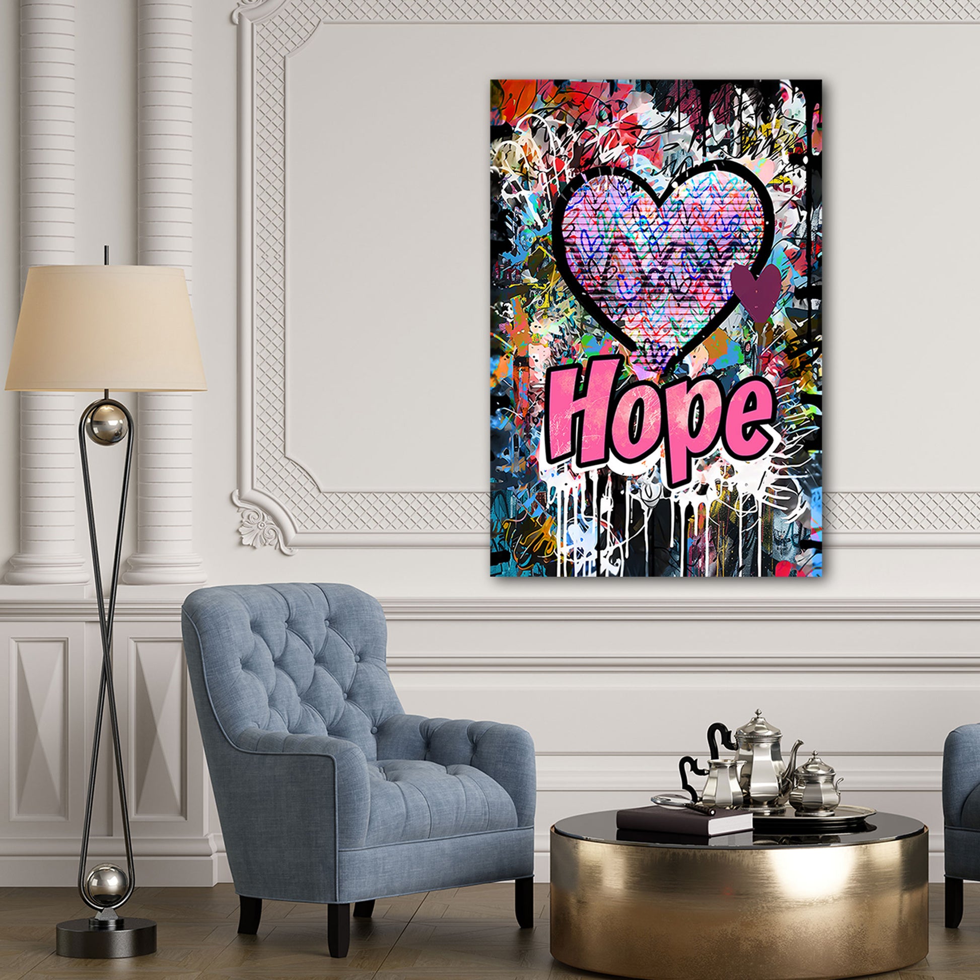 Street Art Herz und Hope Schriftzug Wandbild Kunstwerk